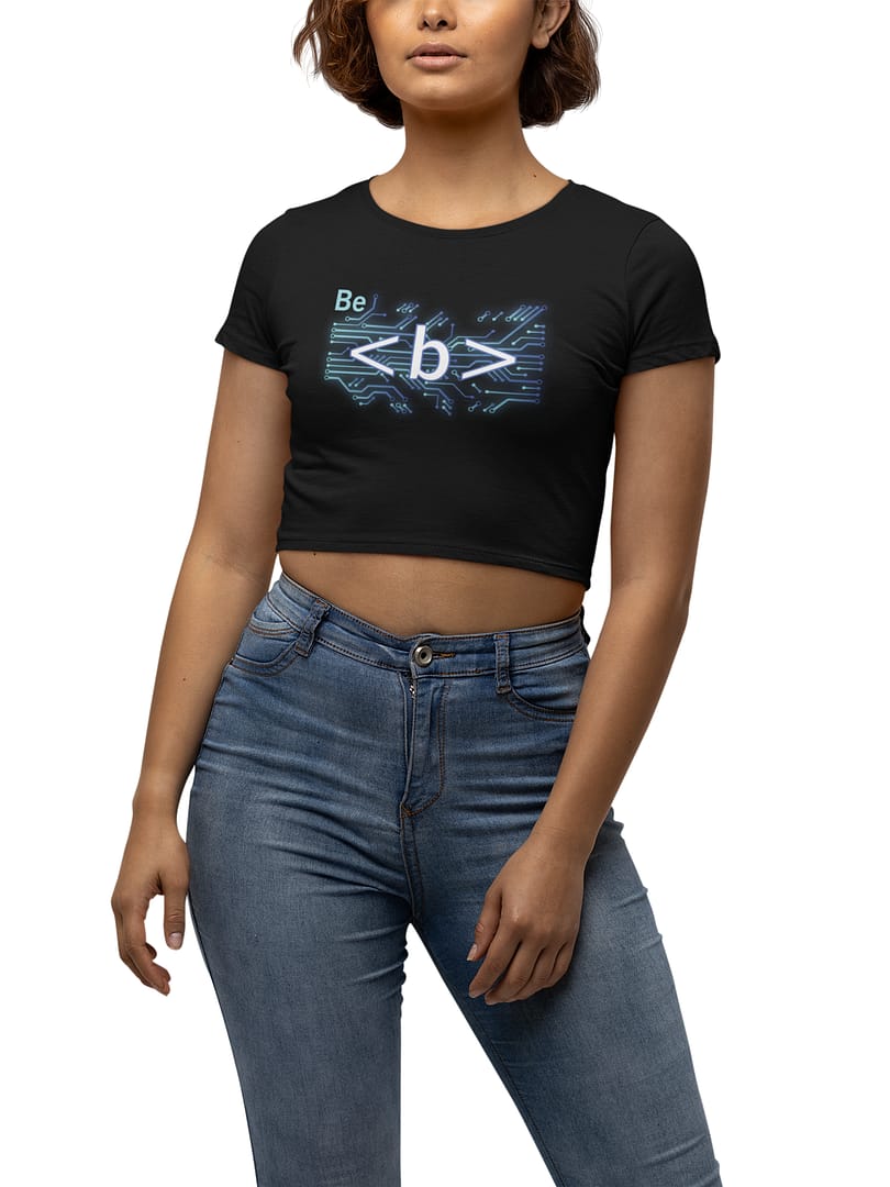 Add a trendy twist to your wardrobe with the “Be Bold” crop top, blending tech enthusiasm with modern fashion.