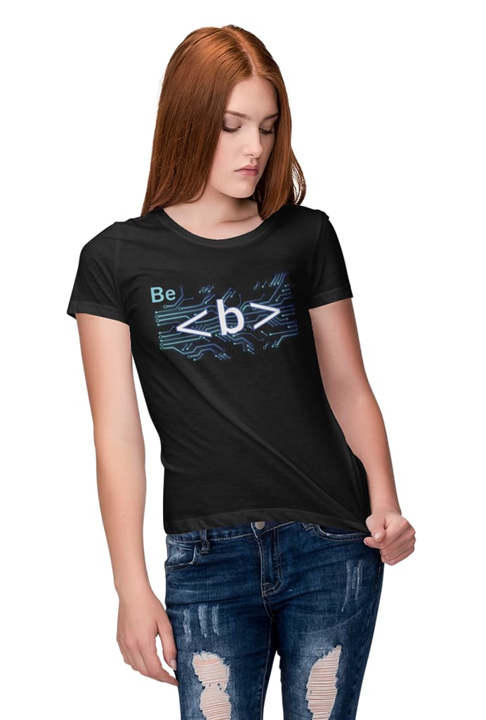 Express your confidence with the “Be Bold” graphic tee, designed for women who embrace technology and stand out. Featuring a unique circuit-inspired design with “Be” as text and “Bold” in code format , this tee is perfect for engineers, programmers, and tech enthusiasts.