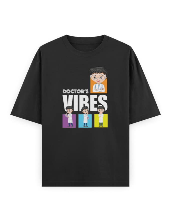 Fun meets function in the DOCTOR’S VIBES oversized tee. With a bold and colorful design featuring animated doctors, this shirt is for those who bring both heart and humor to healthcare.