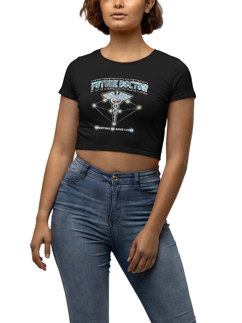 Step into your future with confidence in the “Future Doctor, Studying To Save Lives” Crop Top. Featuring a stunning metallic holographic text and a 3D-effect caduceus, this design represents the dedication and passion of future medical professionals. With a trendy cropped fit, this top is perfect for stylish and ambitious women in the medical field.
