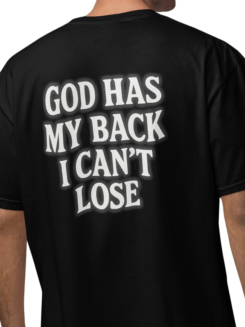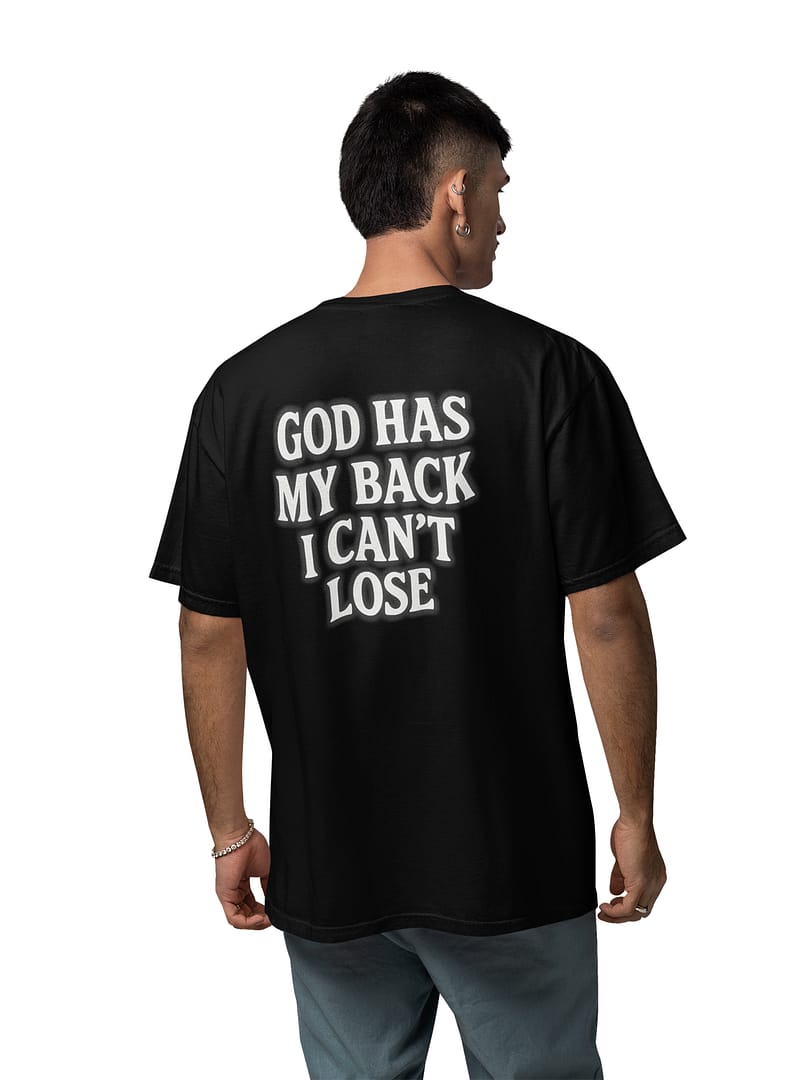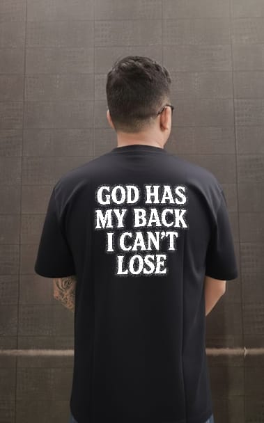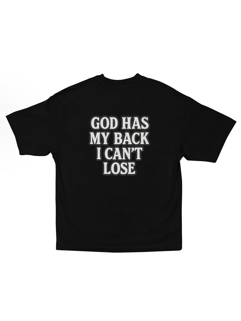 Walk with certainty in the “GOD HAS MY BACK” Oversize T-Shirt. The bold back print—GOD HAS MY BACK, I CAN’T LOSE—glows with a soft airbrushed edge, turning a message of faith into a powerful street-style statement. Clean on the front, unapologetically strong on the back.