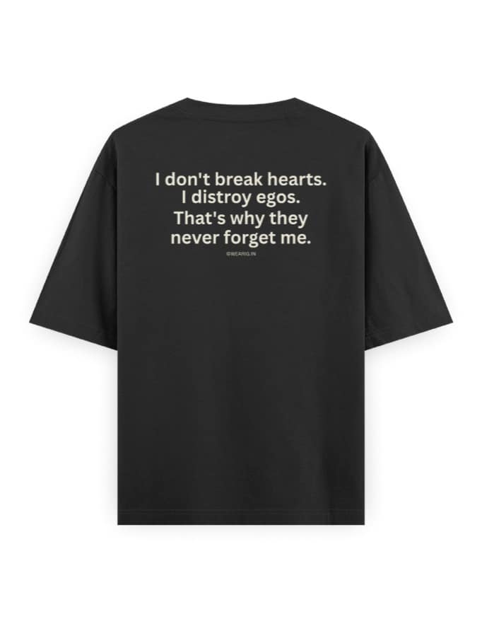 "I Don’t Break Hearts, I Destroy Egos" Unisex Black Oversized Graphic T-Shirt