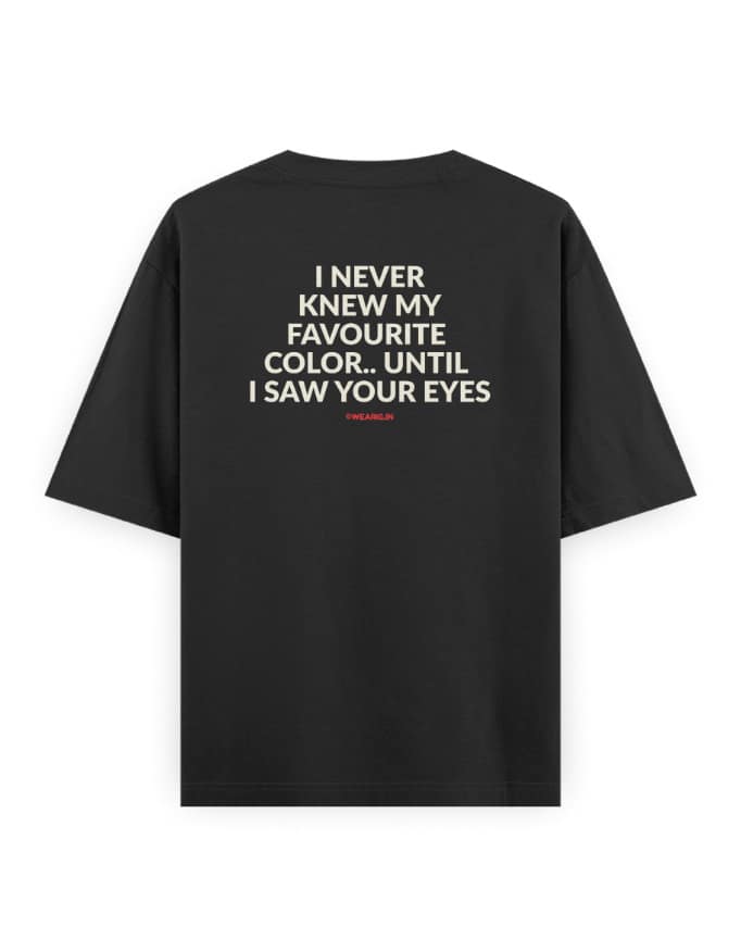 “I Never Knew My Favourite Color.. Until I Saw Your Eyes” Unisex Black Oversized Graphic T-Shirt