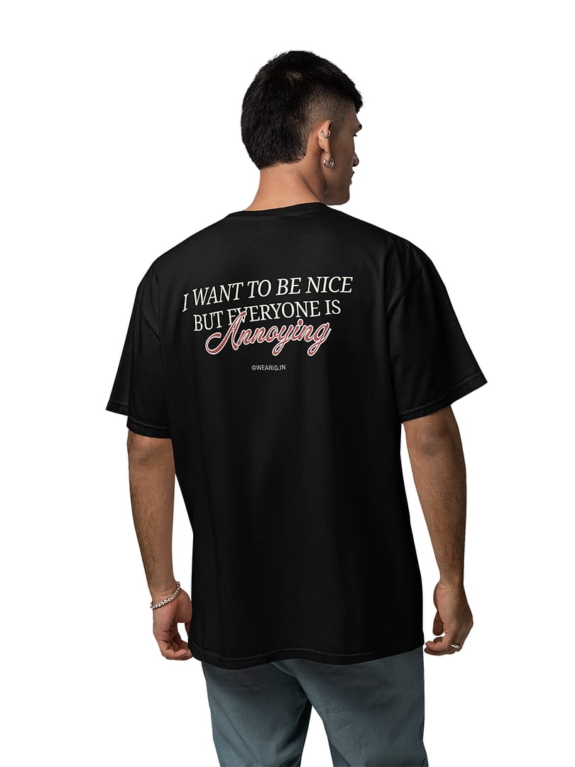 "I Want to Be Nice, But Everyone Is Annoying" Unisex Black Oversized Graphic T-Shirt