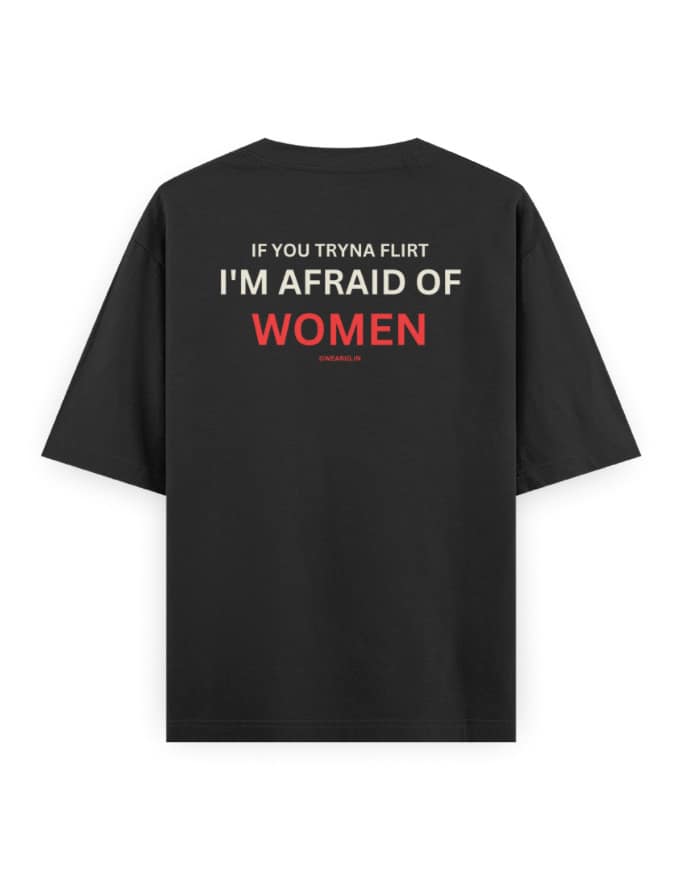 “If You Tryna Flirt I’m Afraid Of Women” Unisex Black Oversized Graphic T-Shirt