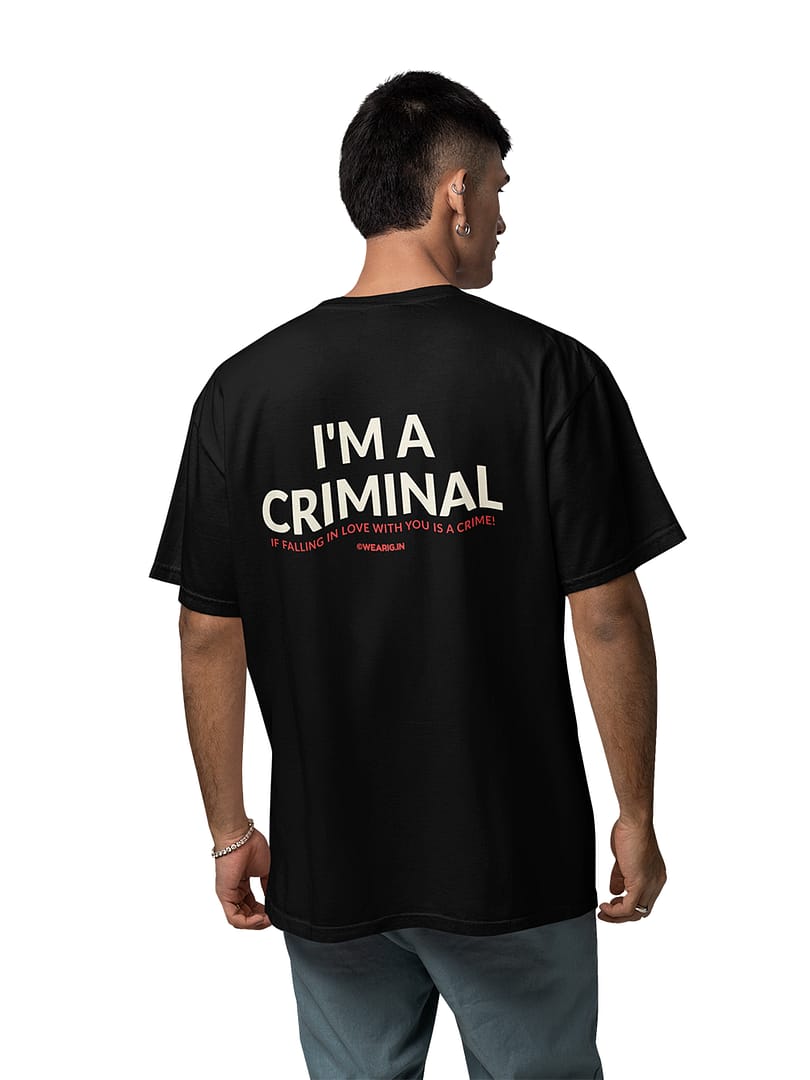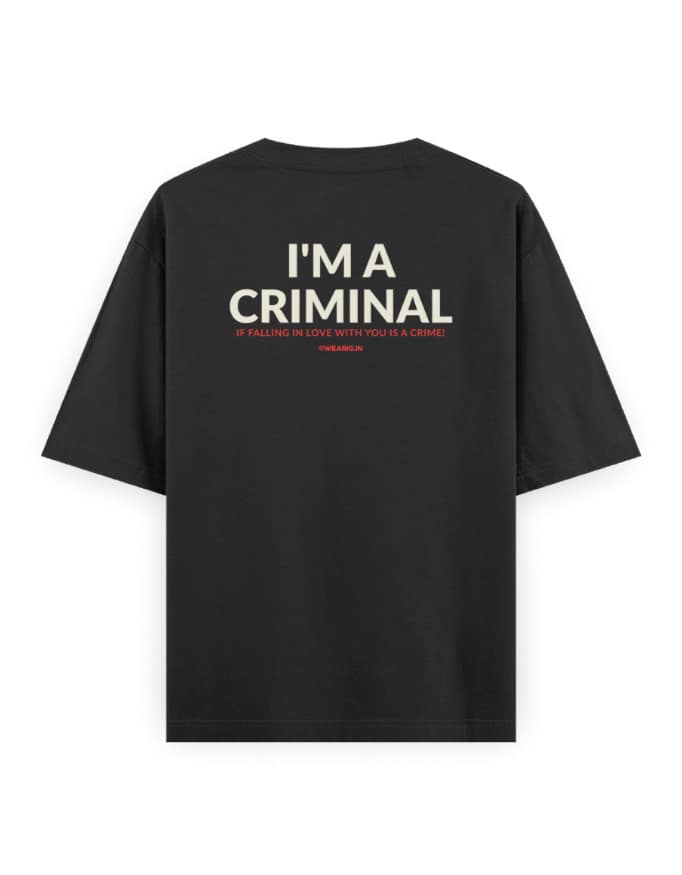"I'm a Criminal – If Falling in Love with You Is a Crime!" Unisex Black Oversized Graphic T-Shirt