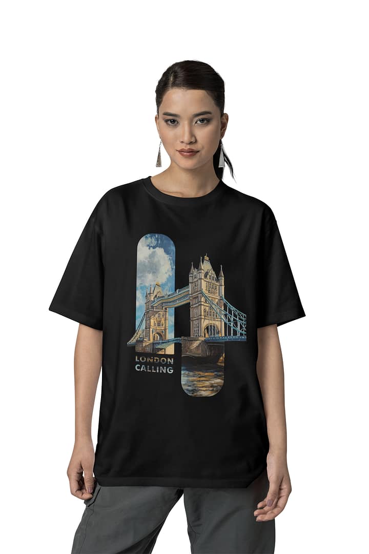 Embrace the essence of London with the “LONDON CALLING” Women’s Oversized T-Shirt. Featuring a relaxed fit and an eye-catching oil-painted London Bridge design, this 240 GSM tee is a statement piece.
