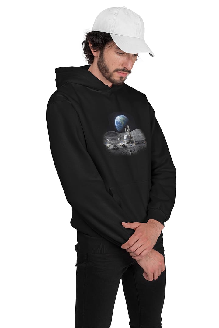 Take your love for space to the next level with our “Moon Base” Pullover Hoodie. Showcasing the intricate details of a lunar base, this hoodie is a tribute to the marvels of space exploration.