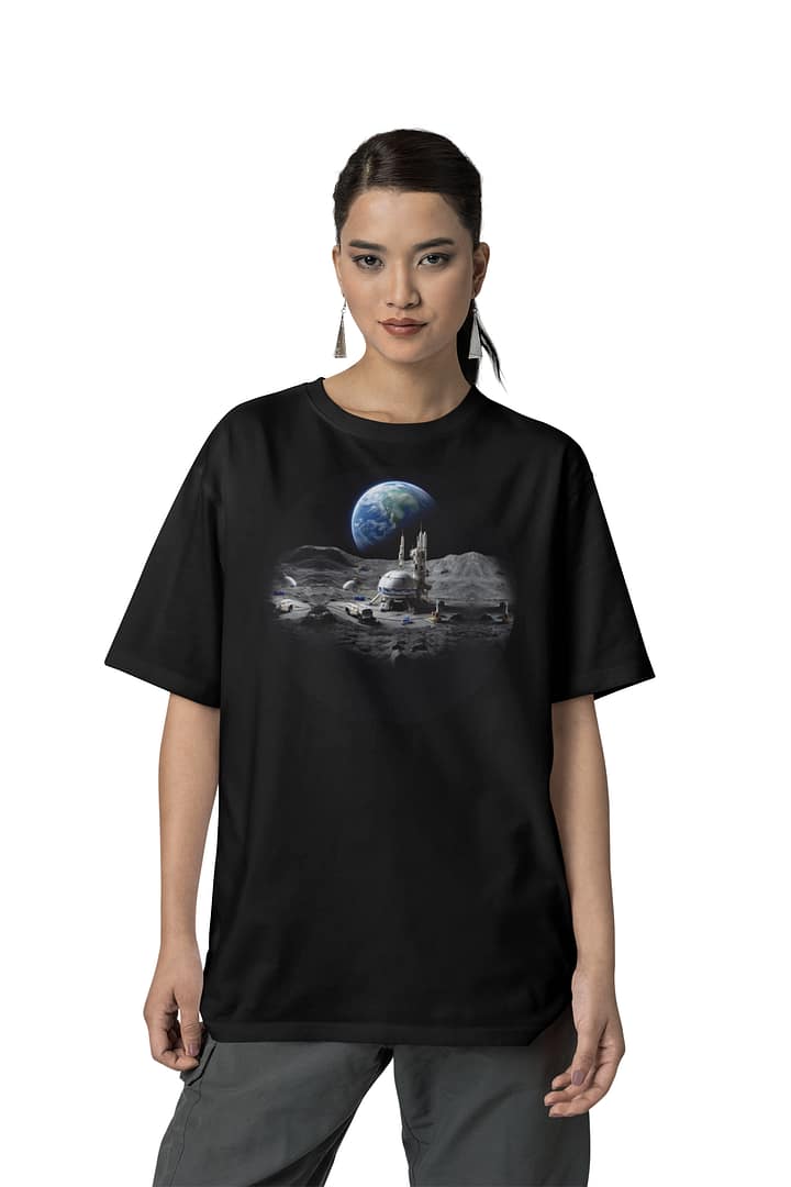 Embrace cosmic vibes with our oversized “Moon Base” T-shirt, designed for those who love a relaxed, trendy fit. The moon base digital illustration adds a futuristic edge to your wardrobe while keeping you comfortable all day long.