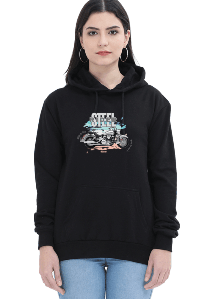 Steel Rider: Women’s Bold Biker Pullover Hoodie