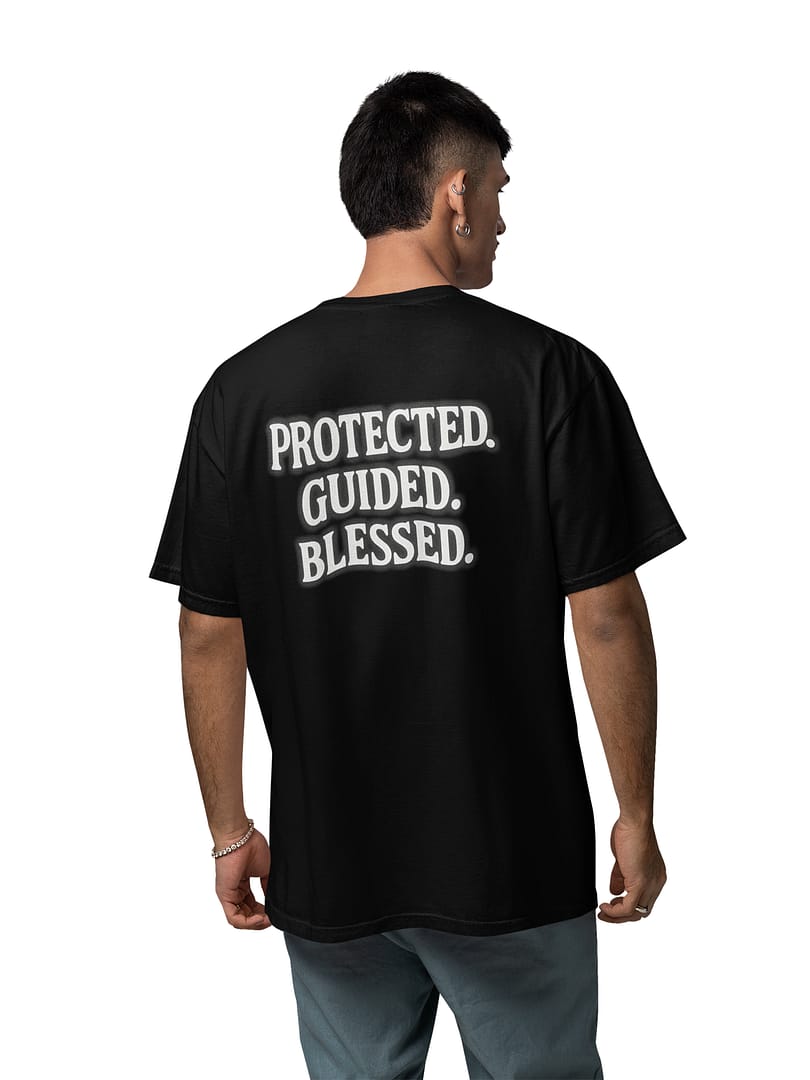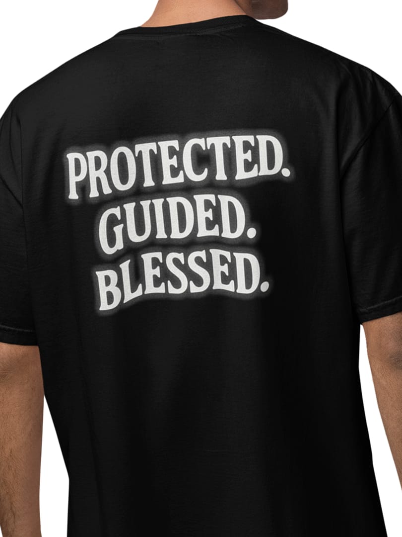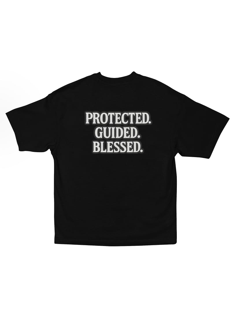 Step out covered in confidence with the “PROTECTED. GUIDED. BLESSED.” Oversize T-Shirt. The triple-statement back print, finished with a soft white glow, delivers a calm yet powerful reminder of divine reassurance. Minimal on the outside, deeply meaningful in message—perfect for everyday wear with purpose.