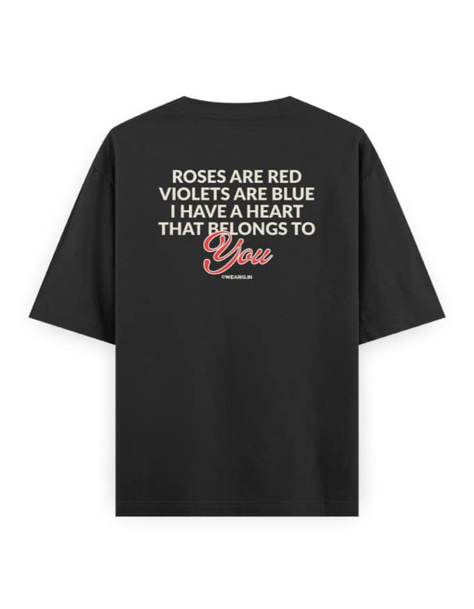 “Roses Are Red Violets Are Blue I Have A Heart That Belongs To You” Unisex Black Oversized Graphic T-Shirt