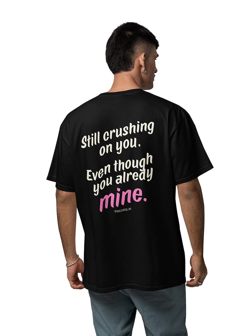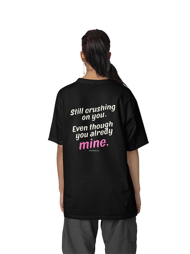"Still Crushing on You, Even Though You Already Mine" Unisex Black Oversized Graphic T-Shirt