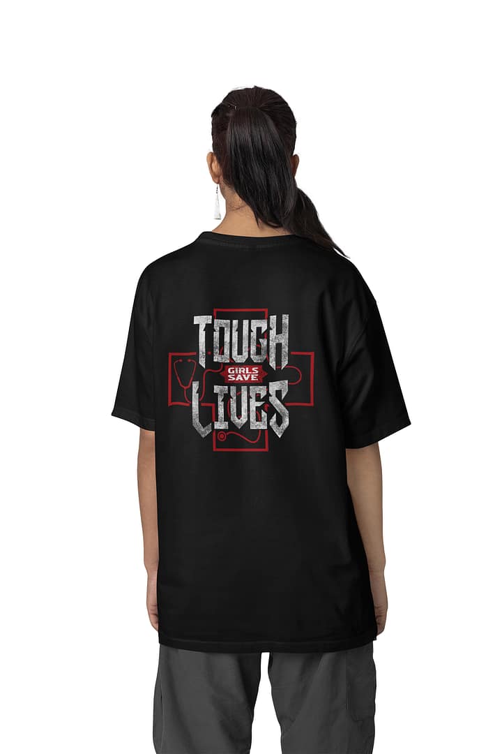 Celebrate your strength and resilience with the “Tough Girls, Save Lives” Oversize T-Shirt. The bold metallic graphic text effect paired with a relaxed oversize fit makes this T-shirt perfect for showcasing your style while staying comfortable.